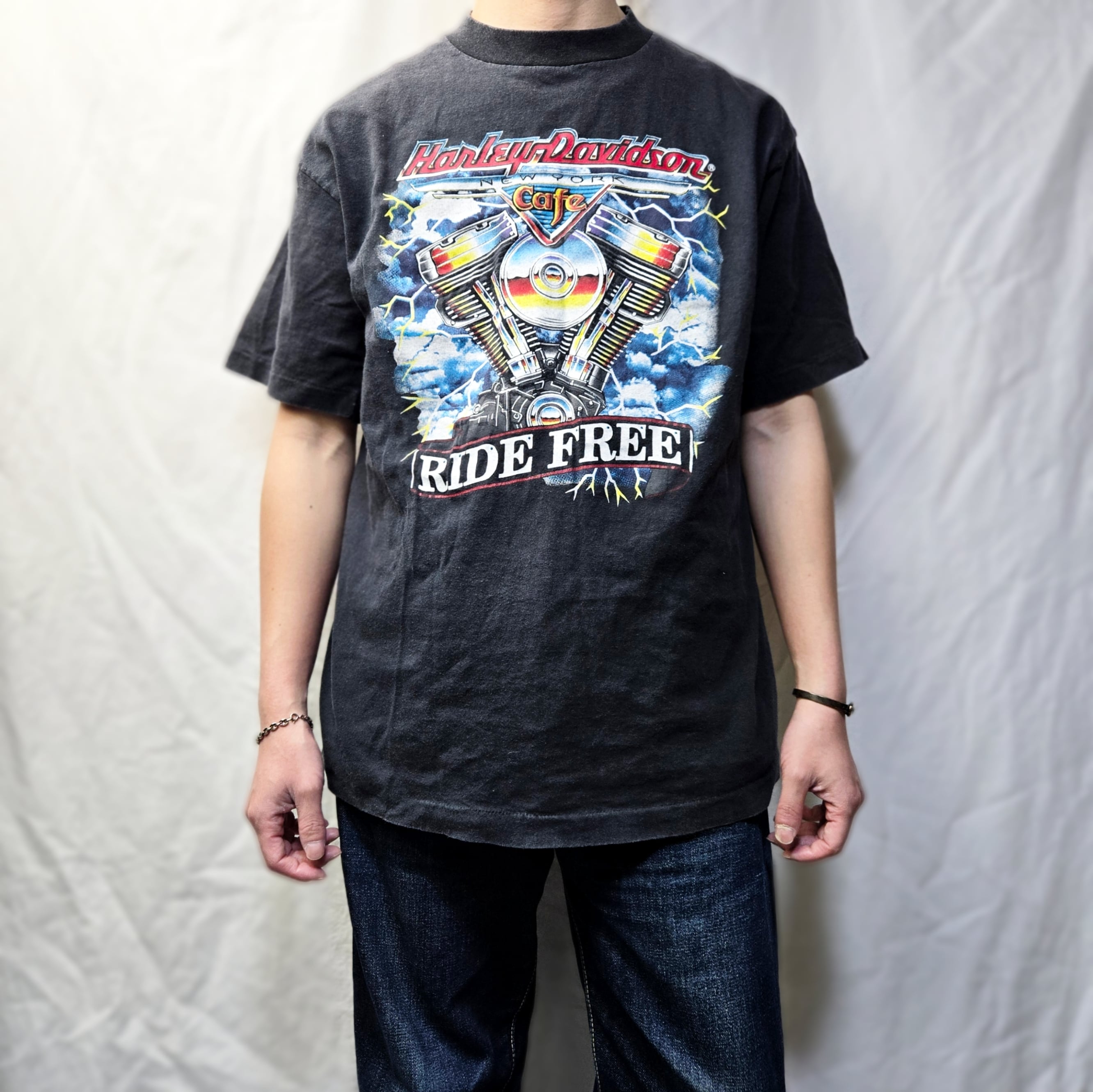 90s 90年代 HARLEY DAVIDSON "RIDE FREE" ハーレー・ダビッドソン ヴィンテージTシャツ ハーレーTシャツ サンダー ライトニング