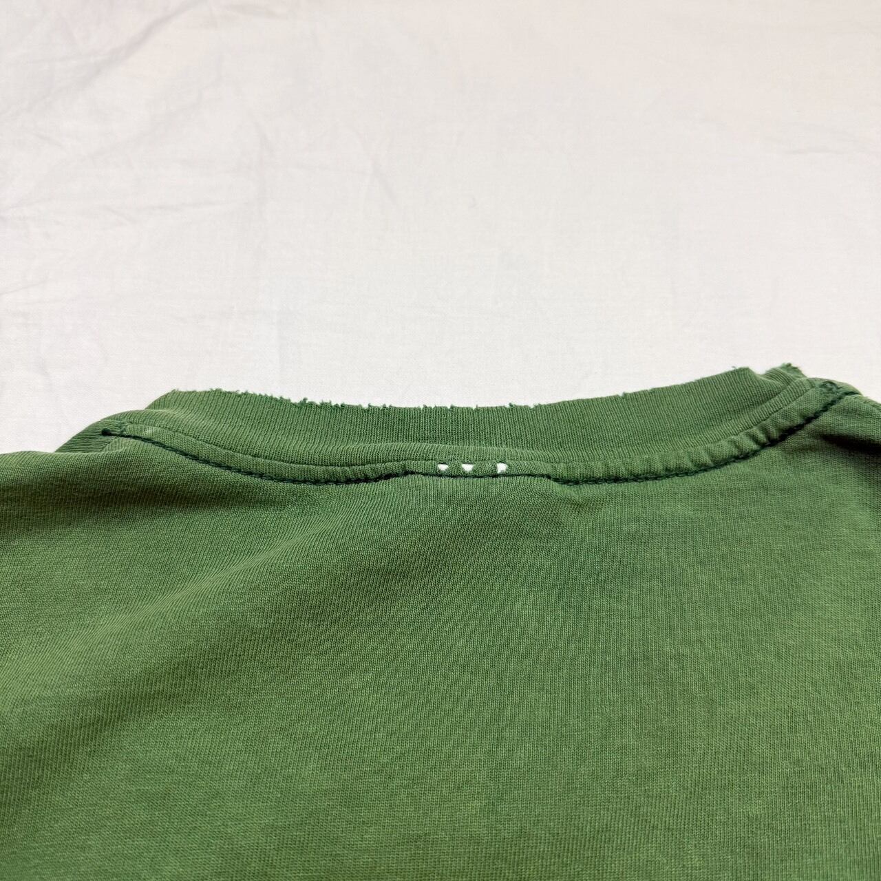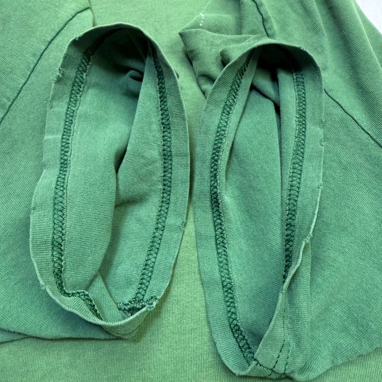 グラデーションのようなサンフェードに細かなブリーチ跡、首リブや袖のダメージなどめちゃくちゃいい雰囲気に仕上がっています
