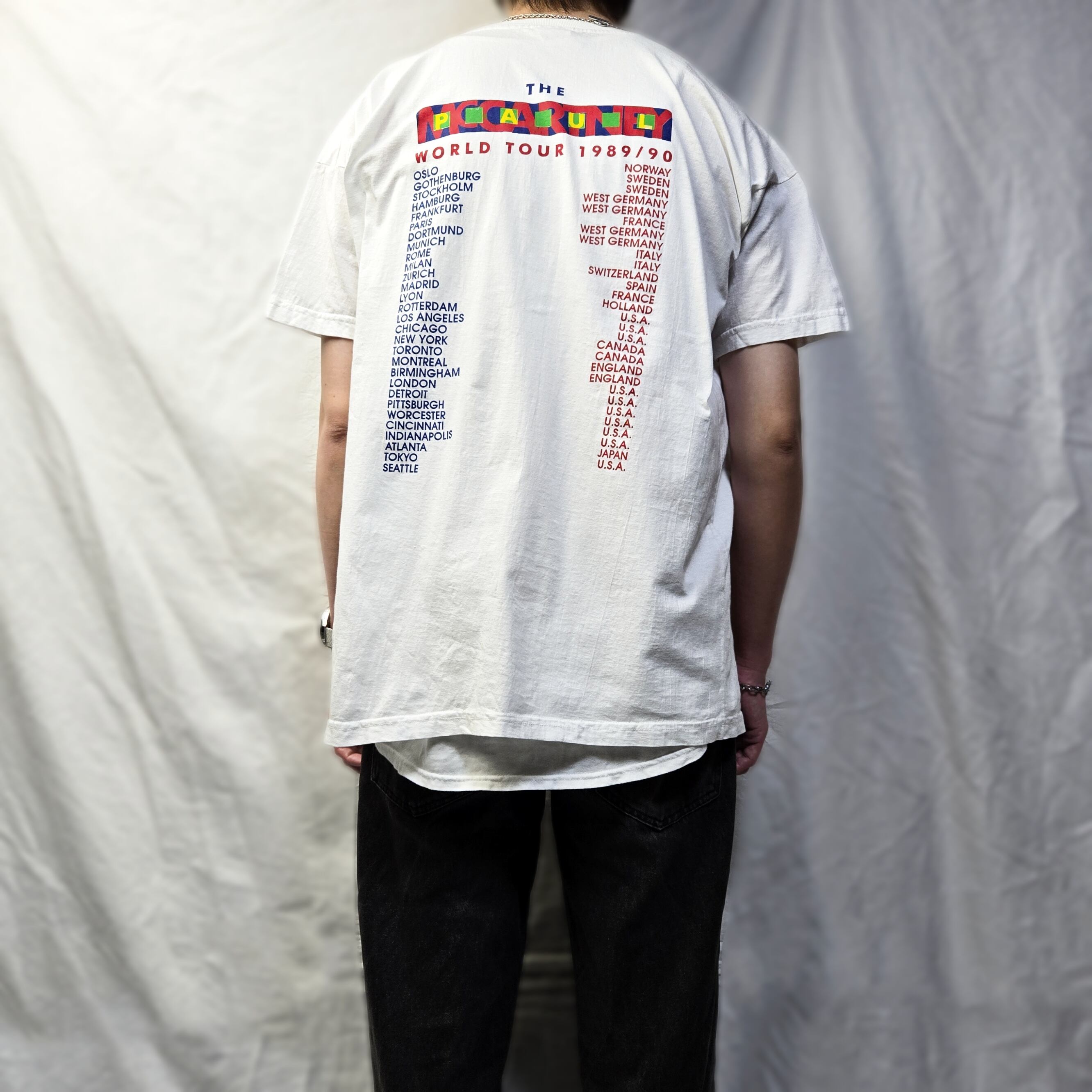 こちらは89〜90年に行われたワールドツアーのツアーTシャツで、コピーライトが入った80s90sのオフィシャルTシャツ