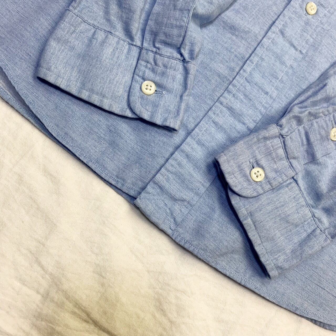 いわゆるハケメ、横に筋が入る雰囲気のいい色味のシャンブレー生地が特徴の1枚になります